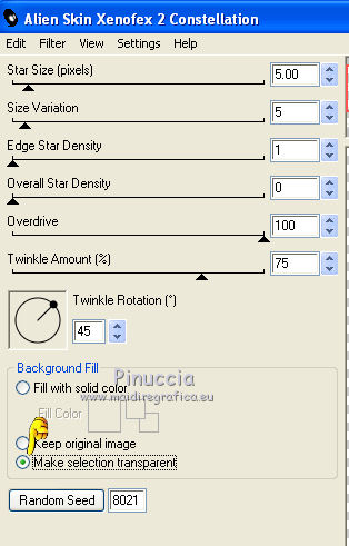 Effetti>Plugins>Alien Skin Xenofex 2.0 - Constellation, clicca su Random Seed e ok.