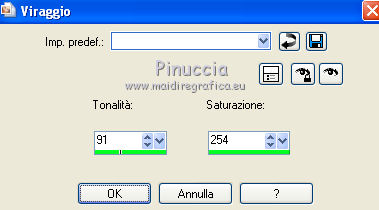 19. Regola>Tonalità e saturazione>Viraggio, con i settaggi precedenti.