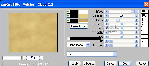 Premere successivamente il tasto Reset serve per cambiare casualmente (ragione per la quale il tuo risultato non potrà essere uguale al mio esempio, l'aspetto delle nuvole.