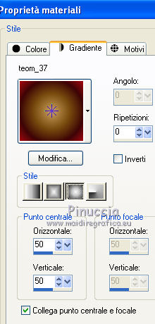 Passa il colore di primo piano a Gradiente, e seleziona il gradiente Teom_37 con i seguenti settaggi.