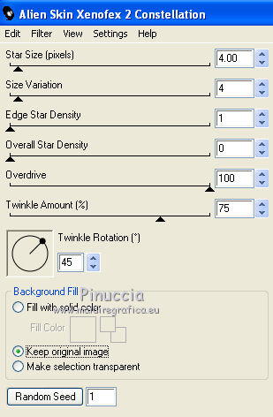 Effetti>Plugins>Alien Skin Xenofex 2.0 - Constellation, clicca su Random Seed e ok.