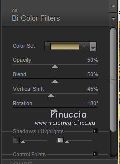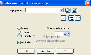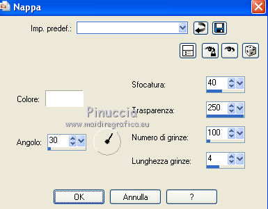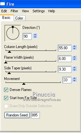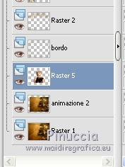 qui puoi trovare qualche risposta ai tuoi dubbi. Se l'argomento che ti interessa non è presente, ti prego di segnalarmelo. Per tradurre questo tutorial ho usato PSP X. Questo tutorial è una creazione di ©Titoune e non può essere copiato su altri siti nè essere offerto per il download. Lo stesso vale per la mia traduzione. Il materiale viene da vari gruppi di condivisione. Il copyright appartiene ai rispettivi autori. Grazie ai creatori dei tubes che mettono a disposizione il loro lavoro in vari gruppi di condivisione. Occorrente: Materiale qui Il tube utilizzato è di ClaudiaViza Gli elementi scrap sono una creazione Aussie scraps ù Rispetta il lavoro degli autori, non cambiare il nome del file e non cancellare il watermark. Filtri: consulta, se necessario, la mia sezione filtri qui FM Tile Tools - Blend Emboss qui Mehdi - Sorting Tiles qui Eye Candy 4000 - Fire qui Nik Software - Color Efex Pro qui Animation Shop qui ![]() Metti la selezione nella cartella Selezioni. 1. Apri una nuova immagine trasparente 750 x 600 pixels. Selezione>Seleziona tutto. 2. Apri l'immagine "christmas-new-year-wallpaper-216" e vai a Modifica>Copia. Torna al tuo lavoro e vai a Modifica>Incolla nella selezione. 3. Selezione>Modifica>Contrai - 50 pixels. Selezione>Inverti. 4. Regola>Sfocatura>Sfocatura gaussiana - raggio 25. 5. Effetti>Effetti di trama>Nappa. ![]() 6. Effetti>Effetti 3D>Smusso a incasso. ![]() Selezione>Inverti. 7. Livelli>Nuovo livello raster. Modifica>Incolla nella selezione (l'immagine christmas-new-year-wallpaper-216 è ancora in memoria). 8. Effetti>Plugins>FM Tile Tools - Blend Emboss, con i settaggi standard. ![]() Rinomina questo livello "animazione 2". 9. Selezione>Modifica>Seleziona bordature selezione. ![]() 10. Livelli>Nuovo livello raster. Attiva il livello Raster 1 e vai a Modifica>Copia. Attiva nuovamente il livello superiore e vai a Modifica>Incolla nella selezione. Selezione>Deseleziona. 11. Effetti>Plugins>Mehdi - Sorting Tiles. ![]() Effetti>Effetti di bordo>Aumenta. Rinomina questo livello "bordo". 12. Apri il tube "titoune_etoiles_lady_christmas" e vai a Modifica>Copia. Torna al tuo lavoro e vai a Modifica>Incolla come nuovo livello. 13. Effetti>Effetti 3D>Sfalsa ombra, con il colore #2d1b04. ![]() Ripeti l'Effetto Sfalsa ombra, cambiando verticale e orizzontale con -3. 14. Apri il tube CSR Blog Train_Candle_Scrap and Tubes e vai a Modifica>Copia. Torna al tuo lavoro e vai a Modifica>Incolla come nuovo livello. 15. Effetti>Effetti di immagine>Scostamento. ![]() Rinomina questo livello "animazione". 16. Effetti>Effetti 3D>Sfalsa ombra, con i settaggi precedenti. 17. Apri il tube CSR Blog Train_Bow_Scrap and Tubes e vai a Modifica>Copia. Torna al tuo lavoro e vai a Modifica>Incolla come nuovo livello. Spostalo in alto a sinistra.18. Effetti>Effetti 3D>Sfalsa ombra, con i settaggi precedenti. 19. Apri il tube CSR Blog Train_Bauble 2_Scrap and Tubes e vai a Modifica>Copia. Torna al tuo lavoro e vai a Modifica>Incolla come nuovo livello. Spostalo in alto a sinistra sotto il nastro.![]() 20. Effetti>Effetti 3D>Sfalsa ombra, con i settaggi precedenti. 21. Apri il tube di ClaudiaViza e vai a Modifica>Copia. Torna al tuo lavoro e vai a Modifica>Incolla come nuovo livello. 22. Immagine>Ridimensiona, al 45%, tutti i livelli non selezionato. Spostalo in basso a sinistra.23. Effetti>Effetti 3D>Sfalsa ombra, con i settaggi precedenti. Nella paletta dei livelli porta questo livello sopra "animazione 2". ![]() 24. Attiva il livello "bordo e vai a Modifica>Copia. Selezione>Seleziona tutto. Immagine>Ritaglia la selezione. 25. Selezione>Seleziona tutto. Selezione>Modifica>Contrai - 5 pixels. Selezione>Inverti. 26. Livelli>Nuovo livello raster. Livelli>Disponi>Porta in alto. Modifica>Incolla nella selezione. Selezione>Deseleziona. Immagine>Rifletti. Livelli>Disponi>Sposta giù. 27. Apri il tube CSR Blog Train_Gift 1_Scrap and Tubes e vai a Modifica>Copia. Torna al tuo lavoro e vai a Modifica>Incolla come nuovo livello. Spostalo in basso a destra.Effetti>Effetti 3D>Sfalsa ombra, con i settaggi precedenti. Apri il tube CSR Blog Train_Gift 3_Scrap and Tubes e vai a Modifica>Copia. Torna al tuo lavoro e vai a Modifica>Incolla come nuovo livello. Spostalo in basso a destra accanto all'altro pacchetto.Effetti>Effetti 3D>Sfalsa ombra, con i settaggi precedenti. Firma il tuo lavoro. 28. Animazione. Attiva il livello "animazione". Selezione>Carica/Salva selezione>Carica selezione da disco. Cerca e carica la selezione "flamme_Lady_christmas". ![]() 29. Effetti>Plugins>Eye Candy 4000 - Fire. ![]() Selezione>Deseleziona. 30. Modifica>Copia Unione. Apri Animation Shop e vai a Modifica>Incolla>Incolla come nuova animazione. 31. Torna in PSP. Modifica>Annulla azione Deseleziona. Modifica>Annulla azione Fire. Effetti>Plugins>Eye Candy 4000 - Fire, clicca su Random Seed e ok. Selezione>Deseleziona. 32. Attiva il livello "animazione 2". Effetti>Plugins>Nik software - Color efex pro 3.1 - Bi-Color Filters. Color Set: Brown 1. ![]() Modifica>Copia Unione. Torna in Animation Shop e vai a Modifica>Incolla>Incolla dopo il fotogramma corrente. 33. Di nuovo in PSP. Modifica>Annulla azione Color Efex. Modifica>Annulla azione Selezione livello. Modifica>Annulla azione Deseleziona. Modifica>Annulla azione Fire. E sei nuovamente sul livello "animazione" con la selezione attiva. Effetti>Plugins>Eye Candy 4000 - Fire, clicca su Random Seed e ok. Selezione>Deseleziona. 34. Attiva il livello "animazione 2". Effetti>Plugins>Nik software - Colorefexpro 3.1 - Bi-Color Filters. Color Set: Brown 3. ![]() Modifica>Copia Unione. Torna in Animation Shop e vai a Modifica>Incolla>Incolla dopo il fotogramma corrente. Modifica>Seleziona tutto. Animazione>Proprietà fotogramma e imposta la velocità a 30. ![]() Controlla il risultato cliccando su Visualizza e salva in formato gif.![]() Se hai problemi o dubbi, o trovi un link non funzionante, o anche soltanto per un saluto, scrivimi. 15 Dicembre 2011 |