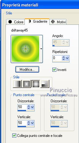 1. Passa il colore di primo piano a Gradiente e seleziona il gradiente driftaway45 con i seguenti settaggi.