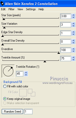 Effetti>Plugins>Alien Skin Xenofex 2.0 - Constellation, clicca su Random Seed e ok.