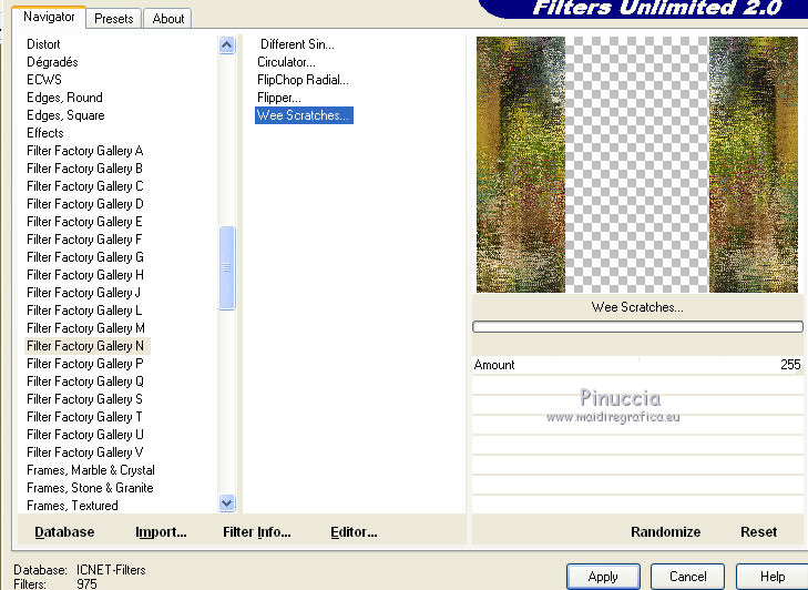 7. Effetti>Plugins>Filters Unlimited 2.0 - Filter Factory Gallery N - Wee Scratches.