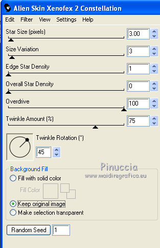 Effetti>Plugins>Alien Skin Xenofex 2.0 - Constellation, clica su Random Seed e ok.