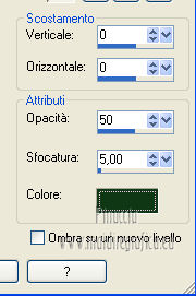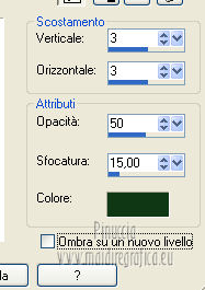 qui puoi trovare qualche risposta ai tuoi dubbi. Se l'argomento che ti interessa non è presente, ti prego di segnalarmelo. Per tradurre questo tutorial ho usato PSP X. Questo tutorial è una creazione di ©Titoune e non può essere copiato su altri siti nè essere offerto per il download. Lo stesso vale per la mia traduzione. Grazie ai creatori dei tubes che mettono a disposizione il loro lavoro in vari gruppi di condivisione. Rispetta il lavoro degli autori, non cambiare il nome del file e non cancellare il watermark. Occorrente: Materiale qui Gli elementi scrap utilizzati sono una creazione http://smiekeltje.blogspot.com.br/ With A Russian Dutch Heart Animation Shop qui ![]() 1. Apri una nuova immagine trasparente 750 x 600 pixels. Selezione>Seleziona tutto. 2. Apri l'elemento paper4 e vai a Modifica>Copia. Torna al tuo lavoro e vai a Modifica>Incolla nella selezione. Selezione>Deseleziona. 3. Apri l'immagine lunanatal028 e vai a Modifica>Copia. Torna al tuo lavoro e vai a Modifica>Incolla come nuovo livello. Livelli>Duplica. Cambia la modalità di miscelatura di questo livello in Sovrapponi, e abbassa l'opacità al 70%. 5. Apri l'elemento LITLOC Page overlay e vai a Modifica>Copia. Torna al tuo lavoro e vai a Modifica>Incolla come nuovo livello. Spostalo in alto.Vedi l'esempio finale. 6. Effetti>Effetti 3D>Sfalsa ombra, con il colore #113715. ![]() Ripeti l'Effetto Sfalsa ombra, cambiando verticale e orizzontale con -3. Rinomina questo livello "ornamento". 7. Apri l'elemento "element 23" e vai a Modifica>Copia. Torna al tuo lavoro e vai a Modifica>Incolla come nuovo livello. Spostalo in basso.Vedi l'esempio finale. 8. Effetti>Effetti 3D>Sfalsa ombra, con il colore #113715. ![]() 9. Apri l'elemento "element 3" e vai a Modifica>Copia. Torna al tuo lavoro e vai a Modifica>Incolla come nuovo livello. Spostalo in basso a destra.Vedi l'esempio finale. 10. Effetti>Effetti 3D>Sfalsa ombra, con il colore #113715. ![]() Ripeti l'Effetto Sfalsa ombra, cambiando verticale e orizzontale con -3. 11. Apri l'elemento "7f8a8c52" e vai a Modifica>Copia. Torna al tuo lavoro e vai a Modifica>Incolla come nuovo livello. Spostalo ai piedi dell'albero.Vedi l'esempio finale. Effetti>Effetti 3D>Sfalsa ombra, con i settaggi precedenti. 12. Apri l'elemento "ec2ce274" e vai a Modifica>Copia. Torna al tuo lavoro e vai a Modifica>Incolla come nuovo livello. Sposta anche questo elemento ai piedi dell'albero.![]() Effetti>Effetti 3D>Sfalsa ombra, con i settaggi precedenti. 13. Apri l'elemento LITLOC Cluster2 e vai a Modifica>Copia. Torna al tuo lavoro e vai a Modifica>Incolla come nuovo livello. Spostalo in alto.Vedi l'esempio finale. Effetti>Effetti 3D>Sfalsa ombra, con i settaggi precedenti. 14. Apri l'elemento "element 26" e vai a Modifica>Copia. Torna al tuo lavoro e vai a Modifica>Incolla come nuovo livello. Spostalo al centro della lanterna.![]() Rinomina questo livello "animazione" e chiudilo. 15. Apri il tube Xmas_wagon_DD (1) e vai a Modifica>Copia. Torna al tuo lavoro e vai a Modifica>Incolla come nuovo livello. Spostalo in basso a sinistra.![]() 16. Effetti>Effetti 3D>Sfalsa ombra, con il colore #113715. ![]() 17. Apri il tuo tube o usa quello fornito (AH Kinder 3010_07) e vai a Modifica>Copia. Torna al tuo lavoro e vai a Modifica>Incolla come nuovo livello. Immagine>Ridimensiona, se e quanto necessario, tutti i livelli non selezionato. Posiziona il tube come preferisci,o vedi il mio esempio. Effetti>Effetti 3D>Sfalsa ombra, con i settaggi precedenti. 18. Attiva il livello Raster 1. Modifica>Copia. 19. Selezione>Seleziona tutto. Immagine>Ritaglia la selezione. 20. Selezione>Seleziona tutto. Immagine>Dimensioni tela - 800 x 650. ![]() 21. Livelli>Nuovo livello raster. Livelli>Disponi>Sposta giù. Selezione>Inverti. Modifica>Incolla nella selezione. Selezione>Deseleziona. 22. Attiva il livello "ornamento". Apri il tube frame Christmas Roses1 e vai a Modifica>Copia. Torna al tuo lavoro e vai a Modifica>Incolla come nuovo livello. 23. Effetti>Effetti 3D>Sfalsa ombra, con il colore #113715. ![]() Ripeti l'Effetto Sfalsa ombra, cambiando verticale e orizzontale con -3. Se vuoi, posiziona gli elementi a tua scelta sul bordo della cornice.Firma il tuo lavoro. 24. Animazione. Assicurati che il livello "animazione" sia chiuso. Modifica>Copia Unione. Apri Animation Shop e vai a Modifica>Incolla>Incolla come nuova animazione. 25. Torna in PSP. Apri il livello "animazione". Modifica>Copia Unione. Torna in Animation Shop e vai a Modifica>Incolla>Incolla dopo il fotogramma corrente. 26. Lascia selezionato soltanto il secondo fotogramma. Animazione>Proprietà animazione, e imposta la velocità a 40. ![]() Controlla il risultato cliccando su Visualizza e salva in formato gif.![]() Se hai problemi o dubbi, o trovi un link non funzionante, o anche soltanto per un saluto, scrivimi. 14 Dicembre 2012 |