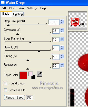 Effetti>Plugins>Eye Candy 4000 - Water Drops, clicca su Random Seed e ok.
