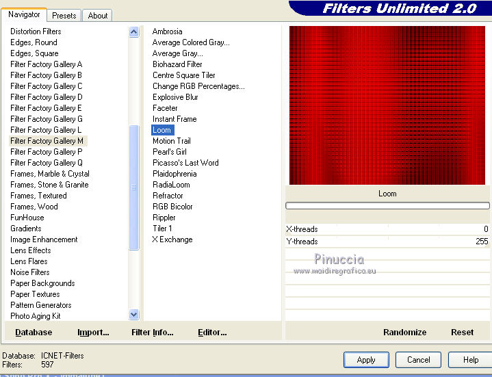 22. Effetti>Plugins>Filters Unlimited - Filter Factory Gallery M - Loom, con i settaggi standard.