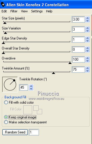 Ripeti l'Effetto Constellation, cliccando un volta su Random Seed.