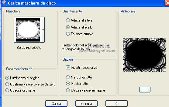 La maschera Corel_07_006 è standard nelle versioni più recenti di PSP; nelle versioni precedenti corrisponde alla Maschera Bordo increspato. Se non la trovi nel tuo PSP, metti quella fornita nella cartella Maschere.
