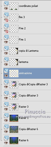 Rimanendo posizionato sul livello "animazione" chiudi il livello "fiamma 1" e apri il livello "fiamma 2".
