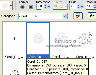 Il pennello Corel_01_027 è standard nelle versioni più recenti di PSP; nelle versioni precedenti corrisponde al pennello Bambagia. Se non lo trovi nel tuo PSP, metti quello fornito nella cartella Pennelli.