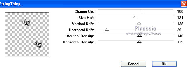 Effetti>Plugins>Two Moon - String thing, imposta Change up a 150.