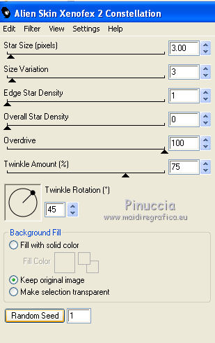 Ripeti l'Effetto Constellation con gli stessi settaggi, ma cliccando una volta su Random Seed.