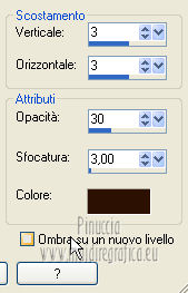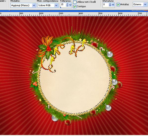 qui puoi trovare qualche risposta ai tuoi dubbi. Se l'argomento che ti interessa non è presente, ti prego di segnalarmelo. Per tradurre questo tutorial ho usato PSP X. Questo tutorial è una creazione di ©Titoune e non può essere copiato su altri siti nè essere offerto per il download. Lo stesso vale per la mia traduzione. Grazie ai creatori dei tubes che mettono a disposizione il loro lavoro in vari gruppi di condivisione. Rispetta il lavoro degli autori, non cambiare il nome del file e non cancellare il watermark. Occorrente: Un tube a scelta. Il resto del materiale qui Tubes ed elementi sono di Zezette 2 Animation Shop qui Filtri Penta.com - Jeans qui Graphics Plus - Cross Shadow qui ![]() 1. Imposta il colore di primo piano con #f7d88c, e il colore di sfondo con #940a0d. Apri una nuova immagine trasparente 750 x 600 pixels, e riempila con il colore di sfondo.2. Effetti>Plugins>Graphics Plus - Cross Shadow. ![]() 3. Apri la paletta del colore di primo piano, seleziona Trama e imposta la trama Griglia con i seguenti settaggi. (se stai usando le versioni più recenti di PSP corrisponde alla trama Corel_15_006) ![]() Livelli>Nuovo livello raster. Riempi il livello con il colore+trama.4. Effetti>Effetti di distorsione>Coordinate polari. ![]() Abbassa l'opacità di questo livello al 50%. 5. Apri l'elemento 3ff21d33 (la cornice) e vai a Modifica>Copia. Torna al tuo lavoro e vai a Modifica>Incolla come nuovo livello. Non spostarlo. 6. Effetti>Effetti 3D>Sfalsa ombra, con il colore 2d1306. ![]() Ripeti l'Effetto Sfalsa ombra, cambiando verticale e orizzontale con -3. 7. Attiva lo strumento Bacchetta magica ![]() e clicca al centro della cornice per selezionarla. Non dimenticare di selezionare i piccoli nodi interni. se non riesci a selezionare, imposta la tolleranza a 15 ![]() 8. Selezione>Modifica>Contrai - 5 pixels. Selezione>Modifica>Sfuma - 10 pixels. 9. Livelli>Nuovo livello raster. Apri l'immagine "c80a64ee" e vai a Modifica>Copia. Torna al tuo lavoro e vai a Modifica>Incolla nella selezione. Selezione>Deseleziona. 10. Livelli>Duplica. Cambia la modalità di miscelatura di questo livello in Luce diffusa. 11. Apri l'elemento ad51bf11_sapin e vai a Modifica>Copia. Torna al tuo lavoro e vai a Modifica>Incolla come nuovo livello. Spostalo a sinistra.Effetti>Effetti 3D>Sfalsa ombra, con i settaggi precedenti. 12. Apri l'elemento da935f7d (le candele) e vai a Modifica>Copia. Torna al tuo lavoro e vai a Modifica>Incolla come nuovo livello. Spostalo in basso a destra.Vedi l'esempio finale. Effetti>Effetti 3D>Sfalsa ombra, con i settaggi precedenti. 13. Apri l'elemento 93b6e917_kdo e vai a Modifica>Copia. Torna al tuo lavoro e vai a Modifica>Incolla come nuovo livello. Spostalo in basso.Vedi l'esempio finale. Effetti>Effetti 3D>Sfalsa ombra, con i settaggi precedenti. 14. Apri l'elemento a29870dd_redballs e vai a Modifica>Copia. Torna al tuo lavoro e vai a Modifica>Incolla come nuovo livello. Spostalo in alto a sinistra.Vedi l'esempio finale. Effetti>Effetti 3D>Sfalsa ombra, con i settaggi precedenti. 15. Apri l'elemento d1519fearedgoldballs e vai a Modifica>Copia. Torna al tuo lavoro e vai a Modifica>Incolla come nuovo livello. Spostalo in alto a destra.Vedi l'esempio finale. Effetti>Effetti 3D>Sfalsa ombra, con i settaggi precedenti. 16. Apri il tuo tube e vai a Modifica>Copia. Torna al tuo lavoro e vai a Modifica>Incolla come nuovo livello. Immagine>Ridimensiona, se e quanto necessario, tutti i livelli non selezionato. Spostalo dove preferisci,o vedi il mio esempio. Effetti>Effetti 3D>Sfalsa ombra, con i settaggi precedenti. 17. Assicurati di essere posizionato sul livello superiore. Livelli>Nuovo livello raster. Imposta il colore di primo piano con un colore chiaro, per l'esempio #f7d88c. Riempi il livello con questo colore.18. Selezione>Seleziona tutto. Selezione>Modifica>Contrai - 2 pixels. Premi sulla tastiera il tasto CANC. Selezione>Inverti. Effetti>Plugins>Penta.com - Jeans, con i settaggi standard. ![]() 19. Effetti>Effetti 3D>Smusso a incasso. ![]() Selezione>Deseleziona. 20. Attiva il livello Raster 1. Selezione>Seleziona tutto. Immagine>Ritaglia la selezione. 21. Immagine>Dimensioni tela - 800 x 650 pixels. ![]() Apri il tube titoune_cadre_noel_flamboyant e vai a Modifica>Copia. Torna al tuo lavoro e vai a Modifica>Incolla come nuovo livello. 22. Attiva il livello superiore. Selezione>Seleziona tutto. 23. Livelli>Nuovo livello raster. Riempi con il colore chiaro #f7d88c.Selezione>Seleziona tutto. Selezione>Modifica>Contrai - 2 pixels. Premi sulla tastiera il tasto CANC. Selezione>Inverti. Effetti>Plugins>Penta.com - Jeans, con i settaggi standard. ![]() Effetti>Effetti 3D>Smusso a incasso. ![]() Selezione>Deseleziona. Nella paletta dei livelli porta il livello del tube e del decoro in alto a sinistra, sopra il livello del bordo interno. ![]() Attiva il livello superiore. Aggiungi il tuo nome e/o il tuo watermark su un nuovo livello. 24. Animazione. Modifica>Copia Unione. Apri Animation Shop e vai a Modifica>Incolla>Incolla come nuova animazione. Modifica>Duplica - 2 volte e avrai un'animazione composta da 3 fotogrammi. Clicca sul primo fotogramma per selezionarlo e vai a Modifica>Seleziona tutto. Apri il tube 8p2pg9qv, anche questo composto da tre fotogrammi. Modifica>Seleziona tutto. Modifica>Copia. Attiva il tuo lavoro e vai a Modifica>Incolla>Incolla nel fotogramma selezionato. Posiziona il testo dove preferisci. Controlla il risultato cliccando su Visualizza ![]() e salva in formato gif. ![]() Se hai problemi o dubbi, o trovi un link non funzionante, o anche soltanto per un saluto, scrivimi. 2 Dicembre 2012 |