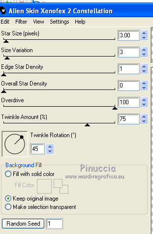 Effetti>Plugins>Alien Skin Xenofex 2.0 - Constellation, clicca su Random Seed e ok.