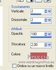 4. Effetti>Effetti 3D>sfalsa ombra, con il colore #cb515a.
