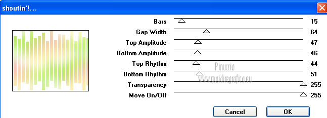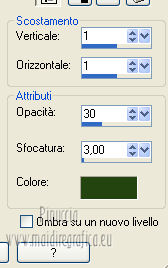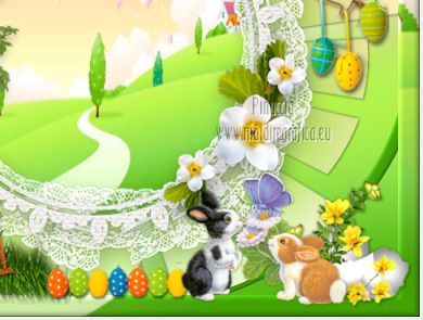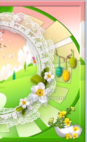 qui puoi trovare qualche risposta ai tuoi dubbi. Se l'argomento che ti interessa non è presente, ti prego di segnalarmelo. Questo tutorial è una creazione di ©Titoune e non può essere copiato su altri siti nè essere offerto per il download. Lo stesso vale per la mia traduzione. Il tutorial è stato creato con PSP X5, ma può essere eseguito anche con le altre versioni di PSP. Secondo la versione utilizzata (anteriore a PSP X) potresti ottenere dei risultati differenti. Per tradurlo, ho usato PSP X. Grazie ai creatori dei tubes che mettono a disposizione il loro lavoro in vari gruppi di condivisione. Rispetta il lavoro degli autori, non cambiare il nome del file e non cancellare il watermark. Occorrente: Un tube a scelta. Il resto del materiale qui Elementi condivisi sul sito Zezette2 Filtri: VM Extravaganza - Shoutin! qui Animation Shop qui ![]() 1. Imposta il colore di primo piano con il colore bianco. Apri una nuova immagine trasparente 750 x 600 pixels, e riempila con il colore bianco.2. Apri l'elemento Flou_depart (questa immagine è colorizzabile in funzione dei tube utilizzati). Modifica>Copia. Torna al tuo lavoro e vai a Modifica>Incolla come nuovo livello. 3. Effetti>Plugins>VM Extravaganza - Shoutin!, con i settaggi standard. ![]() 4. Attiva lo strumento Bacchetta magica ![]() e clicca nello spazio bianco per selezionarlo. ![]() Premi sulla tastiera il tasto CANC .Selezione>Deseleziona. 5. Effetti>Effetti di distorsione>Coordinate polari. ![]() 6. Effetti>Effetti 3D>Sfalsa ombra, con il colore #254410. ![]() Ripeti l'Effetto Sfalsa ombra, cambiando verticale e orizzontale con -1. Livelli>Duplica. 7. Attiva il livello inferiore. Selezione>Seleziona tutto. Livelli>Nuovo livello raster. 8. Apri l'immagine Peach Tree Road housing landscape e vai a Modifica>Copia. Torna al tuo lavoro e vai a Modifica>Incolla nella selezione. 9. Selezione>Modifica>Contrai - 25 pixels. Regola>Sfocatura>Sfocatura gaussiana - raggio 35. ![]() Selezione>Inverti. 10. Effetti>Effetti 3D>Smusso a incasso. ![]() Selezione>Innalza selezione a livello. Selezione>Deseleziona. Rinomina questo livello "bordo". 11. Livelli>Duplica. Livelli>Disponi>Porta in alto. Attiva nuovamente il livello originale. 12. Effetti>Effetti di distorsione>Coordinate polari. ![]() 13. Attiva il livello superiore. Apri l'elemento 0_62981_2f59be8e_L(cornice) e vai a Modifica>Copia. Torna al tuo lavoro e vai a Modifica>Incolla come nuovo livello. Lascialo come sta. 14. Attiva lo strumento Selezione , cerchio,e traccia una selezione intorno alla cornice. ![]() 15. Livelli>Nuovo livello raster. Livelli>Disponi>Sposta giù. 16. Attiva nuovamente l'immagine Peach Tree Road housing landscape e vai a Modifica>Copia. Torna al tuo lavoro e vai a Modifica>Incolla nella selezione. Selezione>Deseleziona. 17. Apri l'elemento 38dc4c7b (l'albero con la sedia) e vai a Modifica>Copia. Torna al tuo lavoro e vai a Modifica>Incolla come nuovo livello. Spostalo in basso a sinistra.Vedi l'esempio finale. Attiva lo strumento Gomma ![]() e cancella la parte inferiore dell'erba che deborda sulla cornice. ![]() Nessun Effetto Sfalsa ombra. 18. Apri l'elemento 0_820bd_c77f199_L (cestino-uova) e vai a Modifica>Copia. Torna al tuo lavoro e vai a Modifica>Incolla come nuovo livello. Sposta anche questo elemento in basso a sinistra.Vedi l'esempio finale. Nessun Effetto Sfalsa ombra. 19. Apri l'elemento "flower" e vai a Modifica>Copia. Torna al tuo lavoro e vai a Modifica>Incolla come nuovo livello. Spostalo in alto a sinistra.![]() Nessun Effetto Sfalsa ombra. 20. Apri l'elemento 3eggs e vai a Modifica>Copia. Torna al tuo lavoro e vai a Modifica>Incolla come nuovo livello. Spostalo a destra.Vedi l'esempio finale. Nessun Effetto Sfalsa ombra. 21. Apri l'elemento egg_flowers e vai a Modifica>Copia. Torna al tuo lavoro e vai a Modifica>Incolla come nuovo livello. Sposta l'elemento in basso a destra.![]() Effetti>Effetti 3D>Sfalsa ombra, con i settaggi precedenti. 22. Apri l'elemento easter_eggs e vai a Modifica>Copia. Torna al tuo lavoro e vai a Modifica>Incolla come nuovo livello. Sposta l'elemento in basso.Vedi l'esempio finale. Nessun Effetto Sfalsa ombra. 23. Apri l'elemento d84c08b8 (coniglietti) e vai a Modifica>Copia. Torna al tuo lavoro e vai a Modifica>Incolla come nuovo livello. Sposta l'elemento in basso a destra.![]() Effetti>Effetti 3D>Sfalsa ombra, con i settaggi precedenti. 24. Apri l'elemento midoun133180397534_art e vai a Modifica>Copia. Torna al tuo lavoro e vai a Modifica>Incolla come nuovo livello. Sposta l'elemento dove preferisci,o vedi il mio esempio. Nessun Effetto Sfalsa ombra. 25. Apri il tuo tube e vai a Modifica>Copia. Torna al tuo lavoro e vai a Modifica>Incolla come nuovo livello. Immagine>Ridimensiona, se e quanto necessario, tutti i livelli non selezionato. Sposta il tube come preferisci,o vedi il mio esempio. Effetti>Effetti 3D>Sfalsa ombra, con settaggi a tua scelta. Firma il tuo lavoro. 26. Animazione. Modifica>Copia Unione. Apri Animation Shop e vai a Modifica>Incolla>Incolla come nuova animazione. Modifica>Duplica, e avrai un'animazione composta da 3 fotogrammi. Clicca sul primo fotogramma per selezionarlo e vai a Modifica>Seleziona tutto. 27. Apri la gif 0aaf84b3, anche questa composta da tre fotogrammi. Modifica>Seleziona tutto. Modifica>Copia. Attiva il tuo lavoro e vai a Modifica>Incolla>Incolla nel fotogramma selezionato. Posiziona la gif in alto a destra, come nel mio esempio. 28. Controlla il risultato cliccando su Visualizza e salva in formato gif.![]() Se hai problemi o dubbi, o trovi un link non funzionante, o anche soltanto per un saluto, scrivimi. 28 Marzo 2013 |