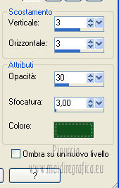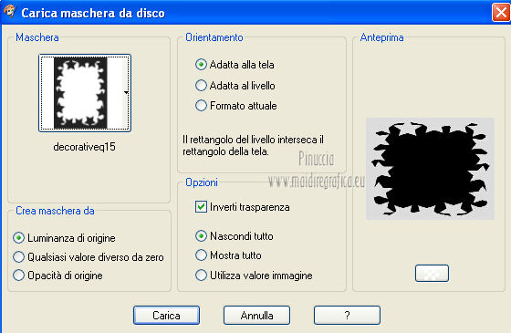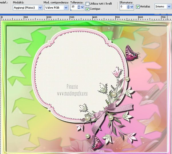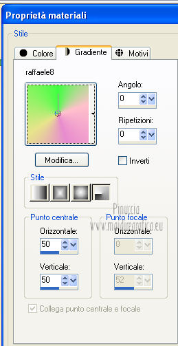 qui puoi trovare qualche risposta ai tuoi dubbi. Se l'argomento che ti interessa non è presente, ti prego di segnalarmelo. Questo tutorial è una creazione di ©Titoune e non può essere copiato su altri siti nè essere offerto per il download. Lo stesso vale per la mia traduzione. Il tutorial è stato creato con PSP X5, ma può essere eseguito anche con le altre versioni di PSP. Secondo la versione utilizzata (anteriore a PSP X) potresti ottenere dei risultati differenti. Per tradurlo, ho usato PSP X. Grazie ai creatori dei tubes che mettono a disposizione il loro lavoro in vari gruppi di condivisione. Rispetta il lavoro degli autori, non cambiare il nome del file e non cancellare il watermark. Occorrente: Un tube a scelta. Il resto del materiale qui Animation Shop qui ![]() Metti il gradiente "raffaele8" nella cartella Gradienti. Metti la maschera "decorativeq15" nella cartella Maschere. 1. Passa il colore di primo piano a Gradiente, e seleziona il gradiente raffaele8, con i seguenti settaggi. ![]() 2. Apri una nuova immagine trasparente 750 x 600 pixels, e riempila con il gradiente.Selezione>Seleziona tutto. Selezione>Modifica>Contrai - 25 pixels. Selezione>Inverti. 3. Effetti>Effetti 3D>Smusso a incasso. ![]() 4. Effetti>Effetti di trama>Plastica morbida. ![]() Di nuovo Effetti>Effetti 3D>Smusso a incasso, con i settaggi precedenti. Selezione>Inverti. 5. Livelli>Nuovo livello raster. Apri l'immagine Spring Lily Flower Vector e vai a Modifica>Copia. Torna al tuo lavoro e vai a Modifica>Incolla nella selezione. Mantieni selezionato. 6. Livelli>Carica/Salva maschera>Carica maschera da disco. Cerca e carica la maschera "decorativeq15". ![]() Livelli>Unisci>Unisci gruppo. Selezione>Deseleziona. 7. Effetti>Effetti 3D>Sfalsa ombra, con il colore #10521d. ![]() Ripeti l'Effetto Sfalsa ombra, cambiando verticale e orizzontale con -3. Abbassa l'opacità di questo livello al 70%. 8. Apri l'elemento "freshness_cluster3" e vai a Modifica>Copia. Torna al tuo lavoro e vai a Modifica>Incolla come nuovo livello. Spostalo un po' più in basso.9. Attiva lo strumento Bacchetta magica , con i seguenti settaggie clicca al centro della cornice per selezionarla. ![]() Livelli>Nuovo livello raster. 10. Apri l'immagine free_vector_flowers_04_600_452x336 e vai a Modifica>Copia. Torna al tuo lavoro e vai a Modifica>Incolla nella selezione. Selezione>Deseleziona. 11. Posizionati sul livello della cornice, con la selezione attiva. Effetti>Effetti 3D>Sfalsa ombra, con i settaggi precedenti. Selezione>Deseleziona. Attiva il livello superiore. 12. Apri l'elemento "freshness_cluster" e vai a Modifica>Copia. Torna al tuo lavoro e vai a Modifica>Incolla come nuovo livello. Spostalo in alto a destra.Vedi l'esempio finale. Effetti>Effetti 3D>Sfalsa ombra, con i settaggi precedenti. 13. Apri l'elemento "freshness_cluster2" e vai a Modifica>Copia. Torna al tuo lavoro e vai a Modifica>Incolla come nuovo livello. Spostalo a sinistra.![]() Effetti>Effetti 3D>Sfalsa ombra, con i settaggi precedenti. 14. Apri il tube "vsc_9a2613ae" e vai a Modifica>Copia. Torna al tuo lavoro e vai a Modifica>Incolla come nuovo livello. Spostalo in alto a sinistra.Vedi l'esempio finale. Effetti>Effetti 3D>Sfalsa ombra, con i settaggi precedenti. 15. Apri il tuo tube e vai a Modifica>Copia. Torna al tuo lavoro e vai a Modifica>Incolla come nuovo livello. Immagine>Ridimensiona, se e quanto necessario, tutti i livelli non selezionato. Spostalo dove preferisci,o vedi il mio esempio. Effetti>Effetti 3D>Sfalsa ombra, con i settaggi precedenti. Firma il tuo lavoro. 16. Animazione. Modifica>Copia Unione. Apri Animation Shop e vai a Modifica>Incolla>Incolla come nuova animazione. 17. Livelli>Duplica - 2 volte, e avrai un'animazione composta da 3 fotogrammi. Clicca sul primo fotogramma per selezionarlo e vai a Modifica>Seleziona tutto. 18. Apri wordart_printemps, anche questo composto da tre fotogrammi. Modifica>Seleziona tutto. Modifica>Copia. Torna al tuo scrap e vai a Modifica>Incolla>Incolla nel fotogramma selezionato. Posiziona l'animazione nella parte superiore della cornice. Modifica>Duplica cliccando sull'icona corrispondente nella barra superiore e la tua animazione avrà 6 fotogrammi. 19. Modifica>Seleziona tutto. Apri l'immagine "tulipes", che è composta da 8 fotogrammi, di cui useremo 6 fotogrammi. Modifica>Seleziona tutto. Modifica>Copia. Torna al tuo scrap e vai a Modifica>Incolla>Incolla nel fotogramma selezionato. Posiziona i fiori in basso a destra. Animazione>Proprietà fotogramma e imposta la velocità a 20. ![]() 41. Controlla il risultato cliccando su Visualizza e salva in formato gif.![]() Se hai problemi o dubbi, o trovi un link non funzionante, o anche soltanto per un saluto, scrivimi. 22 Marzo 2013 |