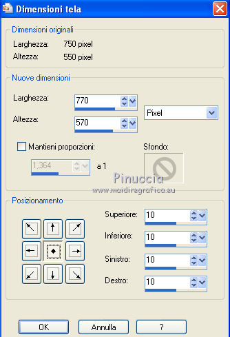 4. Immagine>Dimensione tela - 750 x 550 pixels.