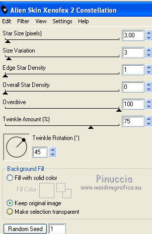Effetti>Plugins>Alien Skin Xenofex 2.0 - Constellation, clicca su Random Seed e ok.
