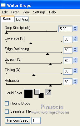 Effetti>Plugins>Eye Candy 4000 - Water Drops, clicca su Random Seed e ok.
