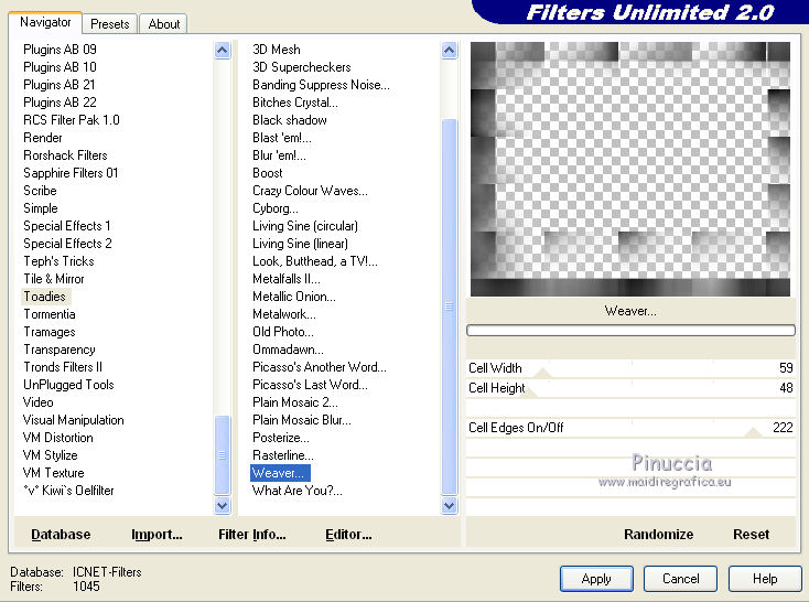 4. Effetti>Plugins>Filters Unlimited 2.0 - Toadies - Weaver.