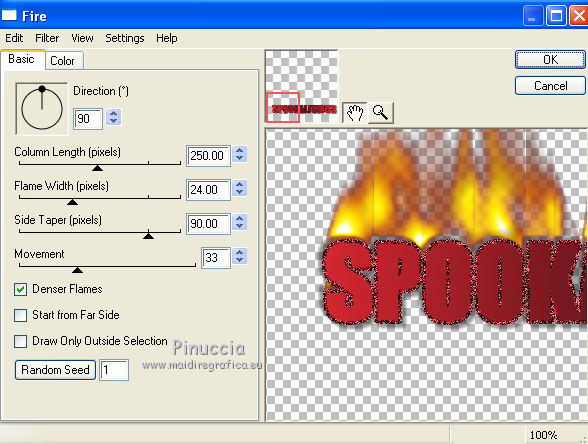 Effetti>Plugins>Eye Candy 4000 - Fire, con gli stessi settaggi, e cliccando una volta su Random Seed.