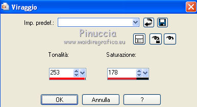Regola>Tonalitā e saturazione>Viraggio, con i settaggi precedenti.