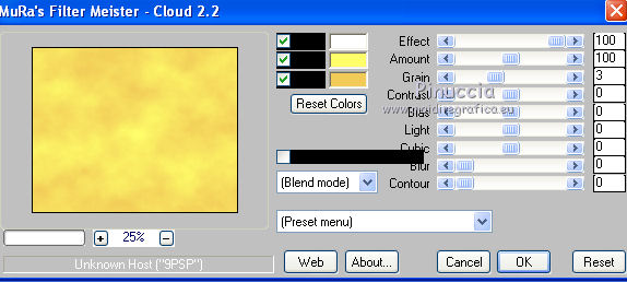 26. Effetti>Plugins>Mura's Meister - Cloud, con i settaggi precedenti.