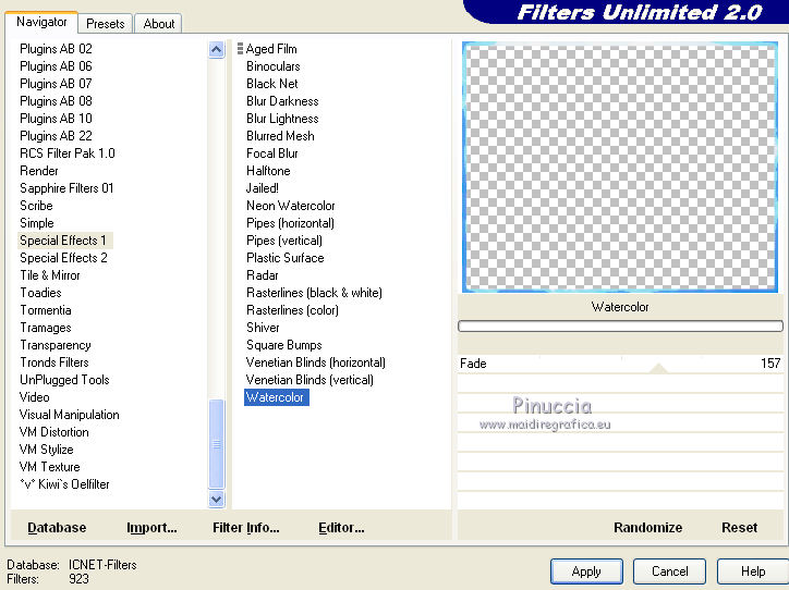 5. Effetti>Plugins>Filters Unlimited 2.0 - Special Effects 1 - Watercolor, con i settaggi standard.