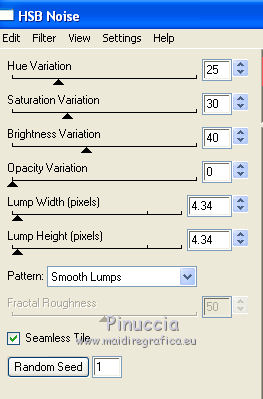 33. Effetti>Plugins>Eye Candy 4000 - HSB Noise, clicca su Random Seed e ok.