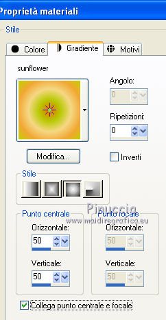Passa il colore di primo piano a Gradiente e seleziona il gradiente Sunflower con i seguenti settaggi.