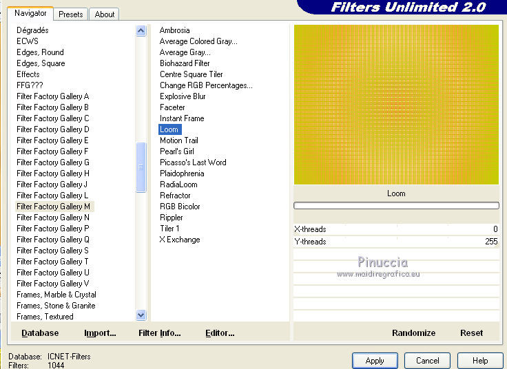 10. Effetti>Plugins>Filter Factory Gallery M - Loom, con i settaggi standard.