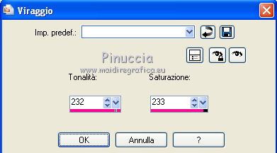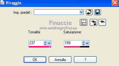 46. Regola>Tonalità e saturazione>Viraggio, con i settaggi precedenti.