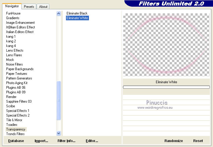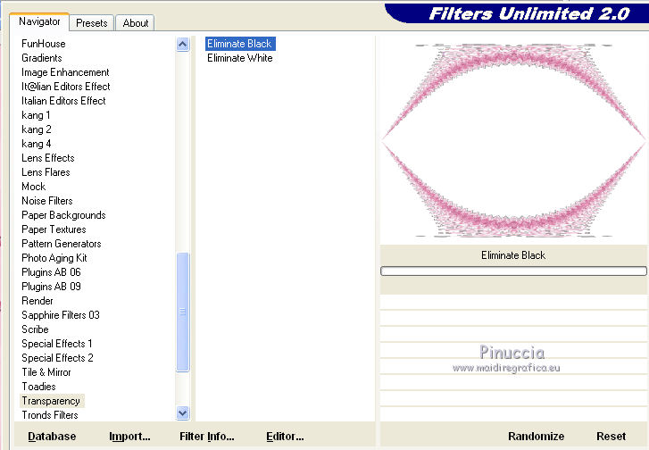 8. Effetti>Plugins>Filters Unlimited 2.0 - Transparency - Eliminate White.
