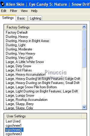 11. Effetti>Plugins>Alien Skin Eye Candy 5 Nature - Snow Drift.