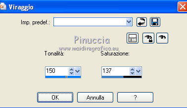 23. Regola>Tonalità e saturazione>Viraggio, con i settaggi precedenti.
