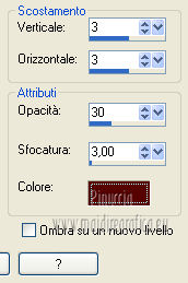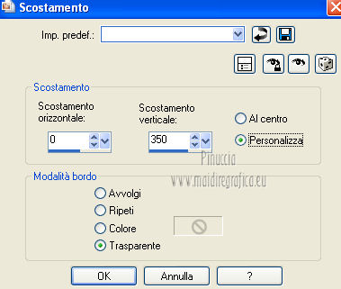 qui puoi trovare qualche risposta ai tuoi dubbi. Se l'argomento che ti interessa non č presente, ti prego di segnalarmelo. Per tradurre questo tutorial ho usato PSP X. Questo tutorial č una creazione di ŠTitoune e non puō essere copiato su altri siti nč essere offerto per il download. Lo stesso vale per la mia traduzione. Grazie ai creatori dei tubes che mettono a disposizione il loro lavoro in vari gruppi di condivisione. Rispetta il lavoro degli autori, non cambiare il nome del file e non cancellare il watermark. Occorrente: Un tube a scelta. Il resto del materiale qui Il tube utilizzato č di Berna. Il tube del paesaggio č di LuzCristina. Filtri: consulta, se necessario, la mia sezione filtri qui DSB Flux - Bright Noise qui Andromeda - Perspective qui ![]() Apri le maschere in PSP e minimizzale con il resto del materiale. 1. Imposta il colore di primo piano con #da6422, e il colore di sfondo con #7a0f0d. 2. Apri una nuova immagine trasparente 1280 x 450 pixels. Selezione>Seleziona tutto. 3. Apri l'immagine Vector Halloween Background by Allonzo Inc Designs-02. Modifica>Copia. Torna al tuo lavoro e vai a Modifica>Incolla nella selezione. Selezione>Deseleziona. 4. Livelli>Nuovo livello maschera>Da immagine. Apri il menu sotto la finestra di origine e vedrai la lista dei files aperti. Seleziona la maschera "Becky_Mask004", con i seguenti settaggi. ![]() Livelli>Unisci>Unisci gruppo. 5. Effetti>Effetti 3D>Sfalsa ombra, con il colore #560000. ![]() Ripeti l'Effetto Sfalsa ombra, cambiando verticale e orizzontale con -3. 6. Immagine>Dimensioni tela - 1280 x 550 pixels. ![]() 7. Livelli>Nuovo livello raster. Livelli>Disponi>Sposta gių. Riempi con il colore di sfondo.Livelli>Nuovo livello raster. Riempi con il colore di primo piano.8. Livelli>Nuovo livello maschera>Da immagine. Apri il menu sotto la finestra di origine e seleziona la maschera SpiderWebDing_chickmask, con i seguenti settaggi. ![]() Livelli>Unisci>Unisci gruppo. 9. Attiva il livello superiore. Effetti>Plugins>Andromeda - Perspective. Clicca sull'icona Presets ![]() imposta i seguenti settaggi e clicca sul segno di spunta in basso a destra per applicare. ![]() Clicca di nuovo sul segno di spunta per chiudere il filtro. ![]() 10. Effetti>Effetti di riflesso>Specchio rotante. ![]() 11. Effetti>Effetti di immagine>Scostamento. ![]() 12. Livelli>Duplica, e attiva il livello sottostante dell'originale. Effetti>Plugins>Andromeda - Perspective. ![]() ![]() 13. Effetti>Effetti di immagine>Scostamento. ![]() 14. Su entrambi i livelli del filtro Andromeda: Effetti>Effetti 3D>Sfalsa ombra, con i settaggi precedenti. 15. Apri l'elemento ele33 e vai a Modifica>Copia. Torna al tuo lavoro e vai a Modifica>Incolla come nuovo livello. Spostalo in alto a sinistra,vedi l'esempio finale. Effetti>Effetti 3D>Sfalsa ombra, con i settaggi precedenti. 16. Apri l'elemento ele17, e vai a Modifica>Copia. Torna al tuo lavoro e vai a Modifica>Incolla come nuovo livello. Spostalo in basso,vedi l'esempio finale. Effetti>Effetti 3D>Sfalsa ombra, con i settaggi precedenti. 17. Apri l'elemento haunted_house e vai a Modifica>Copia. Torna al tuo lavoro e vai a Modifica>Incolla come nuovo livello. Spostalo come nel mio esempio.Livelli>Disponi>Sposta gių. Effetti>Effetti 3D>Sfalsa ombra, con i settaggi precedenti. 18. Attiva nuovamente il livello superiore. Apri l'elemento ele36 e vai a Modifica>Copia. Torna al tuo lavoro e vai a Modifica>Incolla come nuovo livello. Spostalo a destra, come nel mio esempio.Effetti>Effetti 3D>Sfalsa ombra, con i settaggi precedenti. 19. Apri l'elemento ele14 e vai a Modifica>Copia. Torna al tuo lavoro e vai a Modifica>Incolla come nuovo livello. Spostalo in basso a destra.![]() Effetti>Effetti 3D>Sfalsa ombra, con i settaggi precedenti. 20. Apri l'elemento cauldron e vai a Modifica>Copia. Torna al tuo lavoro e vai a Modifica>Incolla come nuovo livello. Sposta anche questo elemento in basso a destra.![]() Effetti>Effetti 3D>Sfalsa ombra, con i settaggi precedenti. 21. Apri l'elemento ele02 e vai a Modifica>Copia. Torna al tuo lavoro e vai a Modifica>Incolla come nuovo livello. Spostalo in basso a sinistra,vedi l'esempio finale. Effetti>Effetti 3D>Sfalsa ombra, con i settaggi precedenti. 22. Apri l'elemento ele16 e vai a Modifica>Copia. Torna al tuo lavoro e vai a Modifica>Incolla come nuovo livello. Sposta anche questo elemento in basso a sinistra,![]() Effetti>Effetti 3D>Sfalsa ombra, con i settaggi precedenti. 23. Apri l'elemento ele13 e vai a Modifica>Copia. Torna al tuo lavoro e vai a Modifica>Incolla come nuovo livello. Sposta anche questo elemento in basso a sinistra,![]() Effetti>Effetti 3D>Sfalsa ombra, con i settaggi precedenti. 24. Apri l'elemento cat Apri l'elemento ele16 e vai a Modifica>Copia. Torna al tuo lavoro e vai a Modifica>Incolla come nuovo livello. Sposta anche questo elemento in basso a sinistra,![]() Effetti>Effetti 3D>Sfalsa ombra, con i settaggi precedenti. 25. Apri l'elemento ele39 e vai a Modifica>Copia. Torna al tuo lavoro e vai a Modifica>Incolla come nuovo livello. Sposta l'elemento in alto.![]() Effetti>Effetti 3D>Sfalsa ombra, con i settaggi precedenti. 26. Apri il tuo tube e vai a Modifica>Copia. Torna al tuo lavoro e vai a Modifica>Incolla come nuovo livello. Immagine>Ridimensiona, se e quanto necessario. Regola>Messa a fuoco>Metti a fuoco. Spostalo come preferisci, o vedi il mio esempio.Effetti>Effetti 3D>Sfalsa ombra, con i settaggi precedenti. 27. Attiva il livello raster 1. Selezione>Seleziona tutto. Immagine>Ritaglia la selezione. 28. Immagine>Dimensioni tela - 1280 x 1500 pixels. ![]() Livelli>Nuovo livello raster. Livelli>Disponi>Porta sotto. 29. Passa il colore di primo piano a Gradiente, stile Sprazzo di luce. ![]() Riempi il livello con il gradiente.30. Apri una nuova immagine trasparente 1280 x 450 pixels. Selezione>Seleziona tutto. 31. Attiva nuovamente l'immagine Vector Halloween Background by Allonzo Inc Designs-02. Modifica>Copia. Torna al tuo top e vai a Modifica>Incolla nella s