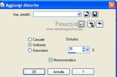 34. Regola>Aggiungi/Rimuovi disturbo>Aggiungi disturbo, con i settaggi precedenti.