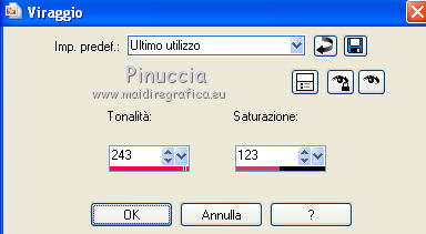 70. Regola>Tonalità e saturazione>Viraggio con i settaggi precedenti.