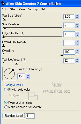 Effetti>Plugins>Alien Skin Xenofex 2.0 - Constellation, clicca su Random Seed e ok.
