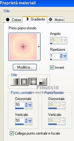 crea un Gradiente stile Sprazzo di luce con i seguenti settaggi.