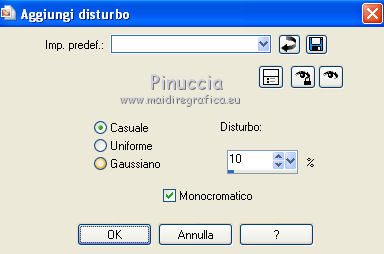 31. Regola>Aggiungi/Rimuovi disturbo>Aggiungi disturbo, con i settaggi precedenti.