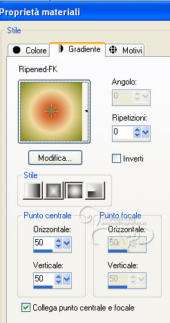 qui puoi trovare qualche risposta ai tuoi dubbi. Se l'argomento che ti interessa non è presente, ti prego di segnalarmelo. Questo tutorial è una creazione di ©Titoune e non può essere copiato su altri siti nè essere offerto per il download. Lo stesso vale per la mia traduzione. Il tutorial è stato creato con PSP X5, ma può essere eseguito anche con le altre versioni di PSP. Secondo la versione utilizzata (anteriore a PSP X) potresti ottenere dei risultati differenti. Per tradurlo, ho usato PSP X. Grazie ai creatori dei tubes che mettono a disposizione il loro lavoro in vari gruppi di condivisione. Rispetta il lavoro degli autori, non cambiare il nome del file e non cancellare il watermark. Occorrente: Materiale qui Il tube utilizzato è di Chaosgaby. Il misted del viso è di Thafs Filtri: Se hai problemi con i filtri consulta la mia sezione qui RCS Filter Pak 1.0 - RCS Digi-Lens Window Shadow II qui Penta.com - Dot and Cross qui Nik Software - Color Efex Pro qui Andromeda - Perspective qui Transparency - Eliminate White qui Simple - Diamonds qui Graphics Plus - Cross Shadow qui Animation Shop qui ![]() Metti il gradiente Ripened-FK nella cartella Gradienti. Metti le selezioni nella cartella Selezioni. 1. Passa il colore di primo piano a Gradiente, e seleziona il gradiente Ripened-FK con i seguenti settaggi. ![]() Imposta il colore di sfondo con #789d3e. 2. Apri una nuova immagine trasparente 675 x 550 pixels, e riempila con il gradiente.3. Livelli>Duplica. Immagine>Ridimensiona, al 75%, tutti i livelli non selezionato. 4. Effetti>Plugins>RCS Filter Pak 1.0 - RCS Digi Lens-Window Shades II. Il filtro lavora da solo, non ha schermate e avrai questo. ![]() 5. Effetti>Plugins>Transparency - Eliminate White. Anche questo filtro non ha schermate. Questo sarà il risultato. ![]() Effetti>Effetti di bordo>Aumenta. 6. Effetti>Effetti 3D>Sfalsa ombra, con il colore nero. ![]() Ripeti l'Effetto Sfalsa ombra, cambiando verticale e orizzontale con -2. 7. Effetti>Plugins>Andromeda - Perspective. Clicca sull'icona Presets. ![]() imposta i seguenti settaggi e clicca sul segno di spunta in basso a destra per applicare ![]() Di nuovo clicca sul segno di spunta per chiudere la finestra. ![]() 8. Attiva lo strumento Bacchetta magica , sfumatura e tolleranza 0,e clicca nel bordo per selezionarlo. ![]() 9. Effetti>Plugins>Simple - Diamonds. Selezione>Innalza selezione a livello. Selezione>Deseleziona. 10. Effetti>Effetti 3D>Sfalsa ombra, con i settaggi precedenti. Rinomina questo livello "animazione". 11. Attiva il livello inferiore. Selezione>Carica/Salva selezione>Carica selezione da disco. Cerca e carica la selezione "sélection_circulaire_andromeda". ![]() Selezione>Innalza selezione a livello. 12. Effetti>Plugins>RCS Filter Pak 1.0 - RCS Digi-Lens Window Shades II. Effetti>Plugins>Transparency - Eliminate White. Selezione>Deseleziona. 13. Effetti>Effetti 3D>Sfalsa ombra, con i settaggi precedenti. 14. Selezione>Carica/Salva selezione>Carica selezione da disco. Cerca e carica la selezione "sélection_rectangulaire_andromeda". ![]() 15. Livelli>Nuovo livello raster. Apri il tube misted_regard_vert_tubed_by_thafs e vai a Modifica>Copia. Torna al tuo lavoro e vai a Modifica>Incolla nella selezione. Selezione>Deseleziona. 16. Livelli>Duplica. Cambia la modalità di miscelatura di questo livello in Luce diffusa. 17. Apri il tube chg.32.15022011 e vai a Modifica>Copia. Torna al tuo lavoro e vai a Modifica>Incolla come nuovo livello. Livelli>Disponi>Porta in alto. 18. Immagine>Ridimensiona, al 65%, tutti i livelli non selezionato. Spostalo a sinistra,vedi l'esempio finale. Per accentuare i colori del tube, l'ho duplicato due volte. Sul livello della seconda copia, cambia la modalità di miscelatura di questo livello in Luce diffusa. Attiva il livello originale del tube. Effetti>Effetti 3D>Sfalsa ombra, con i settaggi precedenti. 19. Attiva il livello superiore. Livelli>Nuovo livello raster. Riempi con il colore di sfondo.20. Effetti>Plugins>Graphics Plus - Cross shadow. ![]() 21. Selezione>Seleziona tutto. Selezione>Modifica>Contrai - 2 pixels. Premi sulla tastiera il tasto CANC ![]() Selezione>Inverti. 22. Effetti>Plugins>Penta.com - Dot and Cross, con i settaggi standard. ![]() Effetti>Effetti di bordo>Aumenta. Selezione>Deseleziona. 23. Effetti>Effetti 3D>Sfalsa ombra, con i settaggi precedenti. 24. Attiva il livello Selezione innalzata ![]() Livelli>Unisci>Unisci giù. Modifica>Copia. Rimani su questo livello. 25. Selezione>Seleziona tutto. Immagine>Ritaglia la selezione. 26. Immagine>Dimensioni tela - 725 x 600 pixels. ![]() 27. Livelli>Nuovo livello raster. Livelli>Disponi>Sposta giù. Selezione>Seleziona tutto. Modifica>Incolla nella selezione. Mantieni selezionato. 28. Livelli>Nuovo livello raster. Livelli>Disponi>Porta in alto. Riempi con il colore di sfondo.29. Effetti>Plugins>Graphics Plus - Cross Shadow, con i settaggi precedenti. Selezione>Seleziona tutto. Selezione>Modifica>Contrai - 2 pixels. Premi sulla tastiera il tasto CANC. Selezione>Inverti. 30. Effetti>Plugins>Penta.com - Dot and Cross, con i settaggi standard. Effetti>Effetti di bordo>Aumenta. Selezione>Deseleziona. 31. Effetti>Effetti 3D>Sfalsa mobra, con i settaggi precedenti. Firma il tuo lavoro. 32. Animazione. Attiva il livello "animazione". Livelli>Duplica - 2 volte, e rimani posizionato sul livello della seconda copia. 33. Effetti>Plugins>Nik Software - Color Efex Pro. Bi-color filters e, a destra seleziona il Color Set "cool warm 1". ![]() Chiudi questo livello e attiva il livello sottostante della prima copia. 34. Effetti>Plugins>Nik Software - Color Efex Pro - Bi-color Filters. Cambia il Color Set con Brown 1 e ok. Chiudi questo livello e attiva il livello sottostante dell'originale. 35. Effetti>Plugins>Nik Software - Color Efex Pro - Bi-color Filters. Cambia il Color Set con Moss 1 e ok. Lascia il livello visibile. 36. Modifica>Copia Unione. Apri Animation Shop e vai a Modifica>Incolla>Incolla come nuova animazione. 37. To