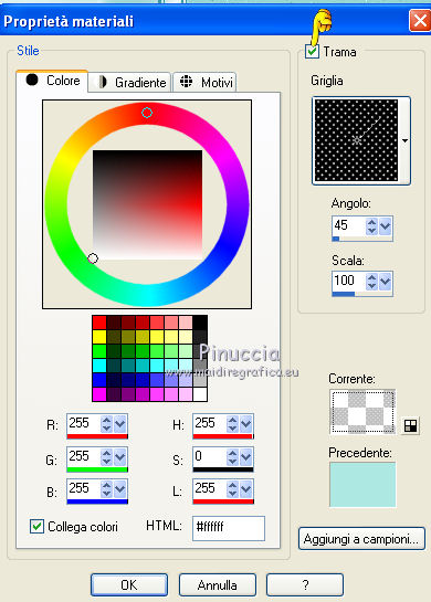Imposta il colore di primo piano con il colore bianco e seleziona Trama.