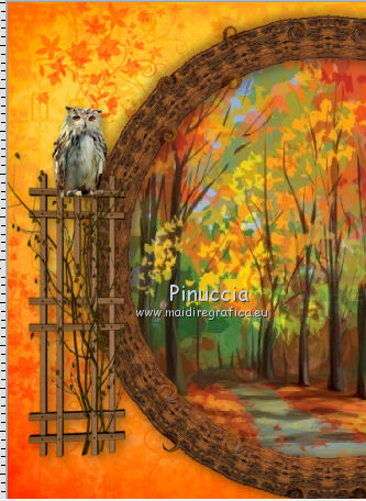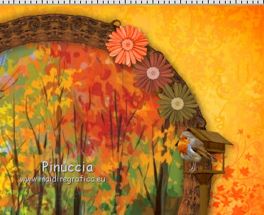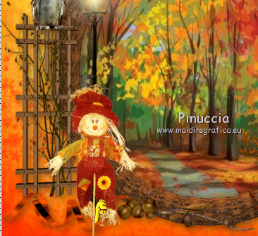 qui puoi trovare qualche risposta ai tuoi dubbi. Se l'argomento che ti interessa non è presente, ti prego di segnalarmelo. Questo tutorial è una creazione di ©Titoune e non può essere copiato su altri siti nè essere offerto per il download. Lo stesso vale per la mia traduzione. Il tutorial è stato creato con PSP X5, ma può essere eseguito anche con le altre versioni di PSP. Secondo la versione utilizzata (anteriore a PSP X) potresti ottenere dei risultati differenti. Vedi la mia scheda riguardante le funzioni Rifletti>Capovolgi nelle più recenti versioni qui Per tradure il tutorial ho usato PSP X. Occorrente: Un tube a scelta. Il resto del materiale qui Il tube utilizzato "merydesign_femme2560" di Mery Filtri: consulta, se necessario, la mia sezione filtri qui Simple - Left Right Wrap (bonus) qui Penta.com - Jeans qui ![]() 1. Apri una nuova immagine trasparente 750 x 600 pixels. Selezione>Seleziona tutto. 2. Apri l'elemento Paper6 e vai a Modifica>Copia. Torna al tuo lavoro e vai a Modifica>Incolla nella selezione. Selezione>Deseleziona. 3. Apri l'elemento sd-element 35 e vai a Modifica>Copia. Torna al tuo lavoro e vai a Modifica>Incolla come nuovo livello. Lascialo come sta. Effetti>Plugins>Simple - Left Right Wrap. Livelli>Duplica. Cambia la modalità di miscelatura di questo livello in Moltiplica. Rinomina questo livello "foglie". 4. Apri l'elemento titoune_autumn_frame e vai a Modifica>Copia. Torna al tuo lavoro e vai a Modifica>Incolla come nuovo livello. Non spostarlo. 5. Attiva lo strumento Bacchetta magica ![]() e clicca al centro della cornice per selezionarla. Selezione>Modifica>Espandi - 5 pixels. Livelli>Nuovo livello raster. Livelli>Disponi>Sposta giù. 6. Apri l'immagine 13790910-vector-of-autumn-landscape-pathway-in-park e vai a Modifica>Copia. Torna al tuo lavoro e vai a Modifica>Incolla nella selezione. Selezione>Deseleziona. 7. Attiva il livello della cornice. Effetti>Effetti 3D>Sfalsa ombra, colore #4c2e13. ![]() Ripeti l'Effetto Sfalsa ombra, cambiato verticale e orizzontale con -5. 8. Apri l'elemento sd-element 18 e vai a Modifica>Copia. Torna al tuo lavoro e vai a Modifica>Incolla come nuovo livello. Spostalo a sinistra.Vedi l'esempio finale. 9. Effetti>Effetti 3D>Sfalsa ombra, con il colore #4c2e13. ![]() 10. Apri l'elemento sd-element 3 e vai a Modifica>Copia. Torna al tuo lavoro e vai a Modifica>Incolla come nuovo livello. Spostalo sullo steccato.![]() Effetti>Effetti 3D>Sfalsa ombra, con i settaggi precedenti. 11. Apri l'elemento sd-element 5 e vai a Modifica>Copia. Torna al tuo lavoro e vai a Modifica>Incolla come nuovo livello. Spostalo a sinistra.![]() Effetti>Effetti 3D>Sfalsa ombra, con i settaggi precedenti. 12. Apri l'elemento sd-element 36 e vai a Modifica>Copia. Torna al tuo lavoro e vai a Modifica>Incolla come nuovo livello. Spostalo in basso a destra.Vedi l'esempio finale. Effetti>Effetti 3D>Sfalsa ombra, con i settaggi precedenti. 13. Apri l'elemento sd-element 34 e vai a Modifica>Copia. Torna al tuo lavoro e vai a Modifica>Incolla come nuovo livello. Sposta anche questo elemento in basso a destra.Vedi l'esempio finale. Effetti>Effetti 3D>Sfalsa ombra, con i settaggi precedenti. 14. Apri l'elemento sd-element 33 e vai a Modifica>Copia. Torna al tuo lavoro e vai a Modifica>Incolla come nuovo livello. Spostalo a destra, sulla casetta-nido.![]() Effetti>Effetti 3D>Sfalsa ombra, con i settaggi precedenti. 15. Apri l'elemento sd-element 30 e vai a Modifica>Copia. Torna al tuo lavoro e vai a Modifica>Incolla come nuovo livello. Spostalo in basso a sinistra.Vedi l'esempio finale. Effetti>Effetti 3D>Sfalsa ombra, con i settaggi precedenti. Livelli>Duplica. Immagine>Rifletti. Posiziona correttamente l'elemento a destra.![]() 16. Apri l'elemento sd-element 6 e vai a Modifica>Copia. Torna al tuo lavoro e vai a Modifica>Incolla come nuovo livello. Spostalo in basso a sinistra.Vedi l'esempio finale. Effetti>Effetti 3D>Sfalsa ombra, con i settaggi precedenti. 17. Apri l'elemento sd-element 8 e vai a Modifica>Copia. Torna al tuo lavoro e vai a Modifica>Incolla come nuovo livello. Spostalo nella parte inferiore della cornice.Vedi l'esempio finale. Effetti>Effetti 3D>Sfalsa ombra, con i settaggi precedenti. 18. Apri l'elemento sd-element 1 e vai a Modifica>Copia. Torna al tuo lavoro e vai a Modifica>Incolla come nuovo livello. Spostalo nella parte inferiore sinistra della cornice.Vedi l'esempio finale. 19. Attiva lo strumento Gomma ![]() e cancella la base del supporto dello spaventapasseri. ![]() Livelli>Duplica. Cambia la modalità di miscelatura di questo livello in Luce diffusa. 20. Attiva il livello sottostante dell'originale. Effetti>Effetti 3D>Sfalsa ombra, con i settaggi precedenti. 21. Apri l'elemento squirrel e vai a Modifica>Copia. Torna al tuo lavoro e vai a Modifica>Incolla come nuovo livello. Spostalo nella parte inferiore della cornice.Vedi l'esempio finale. Effetti>Effetti 3D>Sfalsa ombra, con i settaggi precedenti. 22. Uno alla volta, apri gli elementi: sd-element 26, éléments sd-element 27 et éléments sd-element 28. Modifica>Copia. Torna al tuo lavoro e vai a Modifica>Incolla come nuovo livello. Sposta gli elementi nella parte superiore della cornice.![]() Effetti>Effetti 3D>Sfalsa ombra, con i settaggi precedenti. 23. Apri l'elemento sd-element 12 e vai a Modifica>Copia. Torna al tuo lavoro e vai a Modifica>Incolla come nuovo livello. Spostalo in alto a destra.Vedi l'esempio finale. Effetti>Effetti 3D>Sfalsa ombra, con i settaggi precedenti. 24. Apri l'elemento sd-element 32 e vai a Modifica>Copia. Torna al tuo lavoro e vai a Modifica>Incolla come nuovo livello. Spostalo nella parte superiore sinistra della cornice.Vedi l'esempio finale. Effetti>Effetti 3D>Sfalsa ombra, con i settaggi precedenti. 25. Apri il tuo tube e vai a Modifica>Copia. Torna al tuo lavoro e vai a Modifica>Incolla come nuovo livello. Immagine>Ridimensiona, se e quanto necessario, tutti i livelli non selezionato. Spostalo dove preferisci,o vedi il mio esempio. Effet