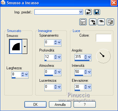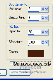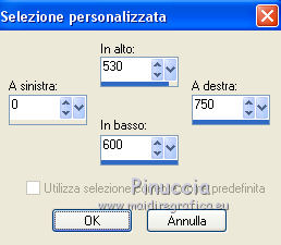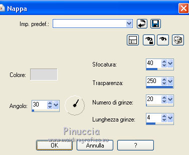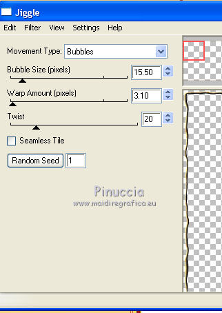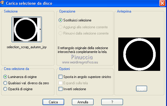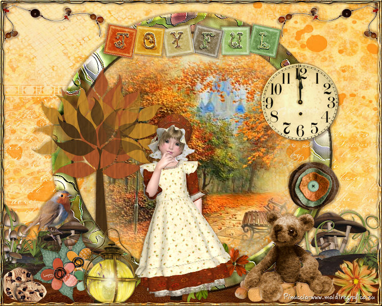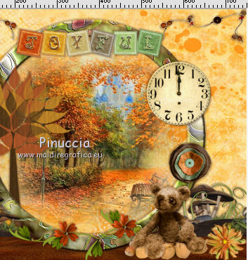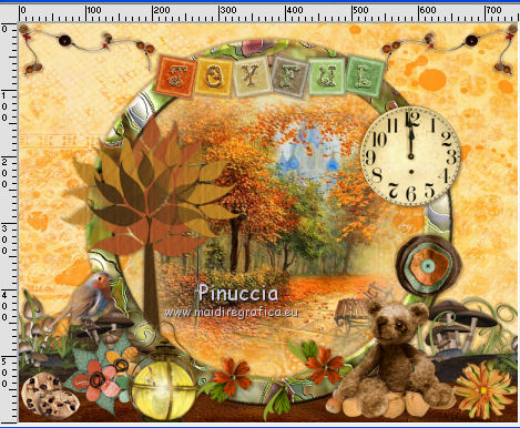 qui puoi trovare qualche risposta ai tuoi dubbi. Se l'argomento che ti interessa non è presente, ti prego di segnalarmelo. Questo tutorial è una creazione di ©Titoune e non può essere copiato su altri siti nè essere offerto per il download. Lo stesso vale per la mia traduzione. Il tutorial è stato creato con Corel17, ma può essere eseguito anche con le altre versioni di PSP. Secondo la versione utilizzata (anteriore a PSP X) potresti ottenere dei risultati differenti. Dalla versione X4, il comando Immagine>Rifletti è stato sostituito con Immagine>Capovolgi in orizzontale, e il comando Immagine>Capovolgi con Immagine>Capovolgi in verticale. Nelle versioni X5 e X6, le funzioni sono state migliorate rendendo disponibile il menu Oggetti. Con il nuovo X7 sono tornati i comandi Rifletti/Capovolgi, ma con nuove differenze. Vedi la scheda sull'argomento qui Per tradurre il tutorial ho usato PSP X. Occorrente: Un tube a scelta. Il resto del materiale qui Filtri in caso di dubbi, ricorda di consultare la mia sezione filtri qui Filters Unlimited 2.0 qui Simple - Left Right Wrap (bonus) qui Eye Candy 4000 - Jiggle qui Mura's Meister - Perspective Tiling qui I filtri Simple si possono usare da soli o importati in Filters Unlimited (come fare vedi qui) Se un filtro fornito appare con questa icona ![]() Metti la selezione nella cartella Selezioni. 1. Apri una nuova immagine trasparente 750 x 600 pixels. Selezione>Seleziona tutto. 2. Apri l'elemento SQ-Autumn Joy PP07, e vai a Modifica>Copia. Torna al tuo lavoro e vai a Modifica>Incolla nella selezione. Selezione>Deseleziona. 3. Attiva lo strumento Selezione ![]() (non importa il tipo di selezione impostato, perchè con la selezione personalizzata si ottiene sempre un rettangolo) clicca sull'icona Selezione personalizzata ![]() e imposta i seguenti settaggi. ![]() 4. Livelli>Nuovo livello raster. Apri l'elemento SQ-Autumn Joy PP04 e vai a Modifica>Copia. Torna al tuo lavoro e vai a Modifica>Incolla nella selezione. 5. Effetti>Effetti di trama>Nappa. ![]() 6. Effetti>Plugins>Mura's Meister - Perspective Tiling. ![]() Selezione>Deseleziona. 7. Selezione>Carica/Salva selezione>Carica selezione da disco. Cerca e carica la selezione "selection_autumn_joy". ![]() 8. Livelli>Nuovo livello raster. Apri l'elemento SQ-Autumn Joy PP01 e vai a Modifica>Copia. Torna al tuo lavoro e vai a Modifica>Incolla nella selezione. 9. Effetti>Effetti artistici>Smalto. ![]() 10. Effetti>Effetti 3D>Smusso a incasso. ![]() Selezione>Deseleziona. 11. Immagine>Ridimensiona, al 95%, tutti i livelli non selezionato. Regola>Messa a fuoco>Metti a fuoco. 12. Attiva il livello sottostante. Con lo strumento Gomma ![]() cancella parte scura visibile nella cornice. ![]() 13. Attiva nuovamente il livello della cornice. Attiva lo strumento Bacchetta magica ![]() e clicca al centro della cornice per selezionarla. Selezione>Modifica>Espandi - 5 pixels. Livelli>Nuovo livello raster. Livelli>Disponi>Sposta giù. 14. Apri il tube 3399-luzcristina e vai a Modifica>Copia. Torna al tuo lavoro e vai a Modifica>Incolla nella selezione. Selezione>Deseleziona. Livelli>Duplica. 15. Di nuovo attiva il livello della cornice. Effetti>Effetti 3D>Sfalsa ombra, colore #491e07. ![]() Ripeti l'Effetto Sfalsa ombra, cambiando verticale e orizzontale con -3. 16. Apri l'elemento SQ-Autumn Joy embellie17 e vai a Modifica>Copia. Torna al tuo lavoro e vai a Modifica>Incolla come nuovo livello. Spostalo nella parte sinistra della cornice.Porta questo livello sotto il livello della cornice. Livelli>Duplica. Livelli>Disponi>Sposta su. 17. Con lo strumento Gomma ![]() cancella la parte del tronco che deborda sulla cornice. ![]() Attiva il livello originale. Effetti>Effetti 3D>Sfalsa ombra, con i settaggi precedenti. Attiva nuovamente il livello superiore. 18. Apri l'elemento SQ-Autumn Joy embellie24, e vai a Modifica>Copia. Torna al tuo lavoro e vai a Modifica>Incolla come nuovo livello. Spostalo nella parte superiore della cornice.Vedi l'esempio finale. Effetti>Effetti 3D>Sfalsa ombra, con i settaggi precedenti. 19. Apri l'elemento SQ-Autumn Joy embellie27, e vai a Modifica>Copia. Torna al tuo lavoro e vai a Modifica>Incolla come nuovo livello. Effetti>Plugins>Simple - Left Right Wrap. 20. Effetti>Effetti di immagine>Scostamento. ![]() Effetti>Effetti 3D>Sfalsa ombra, con i settaggi precedenti. 21. Apri l'elemento SQ-Autumn Joy embellie22, e vai a Modifica>Copia. Torna al tuo lavoro e vai a Modifica>Incolla come nuovo livello. Spostalo in alto a sinistra.Vedi l'esempio finale. Effetti>Effetti 3D>Sfalsa ombra, con i settaggi precedenti. Livelli>Duplica. Immagine>Rifletti. 22. Apri l'elemento SQ-Autumn Joy embellie19, e vai a Modifica>Copia. Torna al tuo lavoro e vai a Modifica>Incolla come nuovo livello. Spostalo nella parte superiore destra della cornice.![]() Effetti>Effetti 3D>Sfalsa ombra, con i settaggi precedenti. 23. Apri l'elemento SQ-Autumn Joy embellie04, e vai a Modifica>Copia. Torna al tuo lavoro e vai a Modifica>Incolla come nuovo livello. Spostalo nella parte inferiore destra della cornice.Vedi l'esempio finale. Effetti>Effetti 3D>Sfalsa ombra, con i settaggi precedenti. 24. Apri l'elemento SQ-Autumn Joy embellie07, e vai a Modifica>Copia. Torna al tuo lavoro e vai a Modifica>Incolla come nuovo livello. Spostalo nella parte inferiore della cornice.Vedi l'esempio finale. Effetti>Effetti 3D>Sfalsa ombra, con i settaggi precedenti. 25. Apri l'elemento SQ-Autumn Joy embellie10, e vai a Modifica>Copia. Torna al tuo lavoro e vai a Modifica>Incolla come nuovo livello. Spostalo nella parte inferiore destra della cornice.Vedi l'esempio finale. Effetti>Effetti 3D>Sfalsa ombra, con i settaggi precedenti. 26. Apri l'elemento SQ-Autumn Joy embellie01, e vai a Modifica>Copia. Torna al tuo lavoro e vai a Modifica>Incolla come nuovo livello. Spostalo nella parte inferiore destra della cornice.Vedi l'esempio finale. Effetti>Effetti 3D>Sfalsa ombra, con i settaggi precedenti. 27. Apri l'elemento SQ-Autumn Joy embellie1
