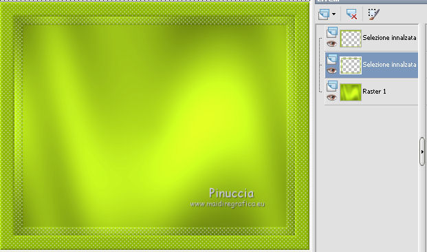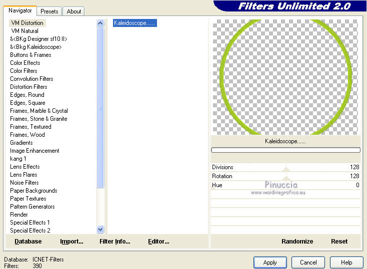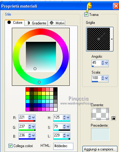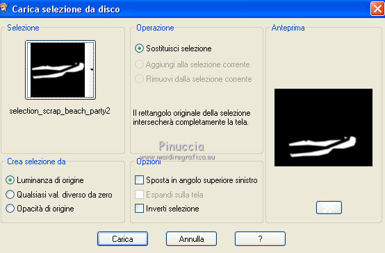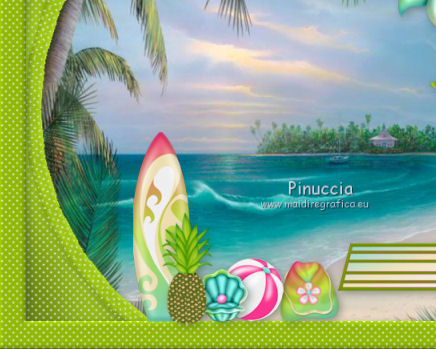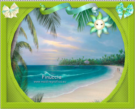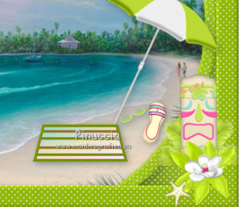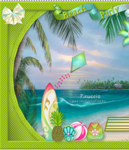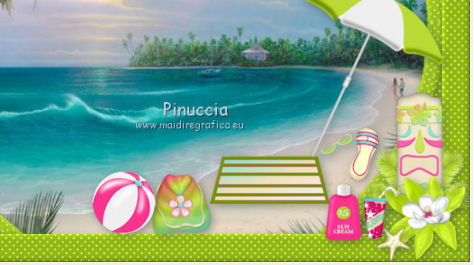 qui puoi trovare qualche risposta ai tuoi dubbi. Se l'argomento che ti interessa non è presente, ti prego di segnalarmelo. Questo tutorial è una creazione di ©Titoune e non può essere copiato su altri siti nè essere offerto per il download. Lo stesso vale per la mia traduzione. Il tutorial è stato creato con PSP X5, ma può essere eseguito anche con le altre versioni di PSP. Secondo la versione utilizzata (anteriore a PSP X) potresti ottenere dei risultati differenti. Vedi la mia scheda riguardante le funzioni Rifletti>Capovolgi in X4 e X5 qui Per tradure il tutorial ho usato PSP X. Occorrente: Un tube a scelta. Il resto del materiale qui Il tube utilizzato è di Judy. Filtri: se hai problemi con i filtri consulta la mia sezione filtri qui Filters Unlimited 2.0 qui Graphics Plus qui VM Distortion qui Penta.com - Jeans qui Eye Candy 4000 - Jiggle qui I filtri VM Distortion, Penta e Graphics Plus si possono usare da soli o importati in Filters Unlimited. (come fare vedi qui). Se un filtro fornito appare con questa icona Animation Shop qui ![]() Metti le selezioni nella cartella Selezioni. 1. Imposta il colore di primo piano con #ddedec, e il colore di sfondo con #91b800. 2. Apri una nuova immagine trasparente 750 x 600 pixels, e riempila con il colore di sfondo.3. Apri la paletta del colore di primo piano e seleziona Trama. Scegli la trama Griglia con i seguenti settaggi. ![]() Riempi con questo colore+trama.4. Selezione>Seleziona tutto. Selezione>Modifica>Contrai - 35 pixels. Regola>Sfocatura>Sfocatura gaussiana - raggio 15. ![]() 5. Effetti>Plugins>Graphics Plus - Cross Shadow. ![]() 6. Selezione>Modifica>Seleziona bordature selezione. ![]() Selezione>Innalza selezione a livello. 7. Effetti>Effetti 3D>Smusso a incasso. ![]() Riempi con il colore di primo piano+trama.8. Di nuovo Selezione>Seleziona tutto. Selezione>Modifica>Contrai - 35 pixels. Selezione>Inverti. 9. Attiva il livello inferiore. Selezione>Innalza selezione a livello. Effetti>Effetti 3D>Smusso a incasso, con i settaggi precedenti. Livelli>Disponi>Porta in alto. Selezione>Deseleziona. 10. Attiva il livello immediatamente sotto. ![]() Effetti>Plugins>Filters Unlimited 2.0 - FM Distortion - Kaleidoscope, con i settaggi standard. ![]() Rinomina questo livello "kaleidoscope". 11. Attiva lo strumento Bacchetta magica ![]() e clicca nei quattro angoli per selezionarli. ![]() 12. Livelli>Nuovo livello raster. Livelli>Disponi>Sposta giù. Riempi con il colore di primo piano+trama.Selezione>Deseleziona. 13. Attiva il livello "kaleidoscope". Livelli>Unisci>Unisci giù. 14. Effetti>Effetti 3D>Sfalsa ombra, con il colore #394e3f. ![]() 15. Selezione>Carica/Salva selezione>Carica selezione da disco. Cerca e carica la selezione "selection_scrap_beach_party". ![]() 16. Livelli>Nuovo livello raster. Livelli>Disponi>Sposta giù. Apri l'immagine Beach_House_Rendezvous e vai a Modifica>Copia. Torna al tuo lavoro e vai a Modifica>Incolla nella selezione. Selezione>Deseleziona. Rinomina questo livello "animazione". 17. Attiva il livello superiore. Effetti>Effetti 3D>sfalsa ombra, con i settaggi precedenti. 18. Apri l'elemento DCD_BePa_HappyFaced Sun e vai a Modifica>Copia. Torna al tuo lavoro e vai a Modifica>Incolla come nuovo livello. Spostalo in alto a destra.Vedi l'esempio finale. Effetti>Effetti 3D>Sfalsa ombra, con i settaggi precedenti. 19. Apri l'elemento DCD_BePa_Bow01 e vai a Modifica>Copia. Torna al tuo lavoro e vai a Modifica>Incolla come nuovo livello. Spostalo in alto a sinistra.Vedi l'esempio finale. Effetti>Effetti 3D>Sfalsa ombra, con i settaggi precedenti. 20. Apri l'elemento DCD_BePa_Bow02 e vai a Modifica>Copia. Torna al tuo lavoro e vai a Modifica>Incolla come nuovo livello. Spostalo in alto a destra.Vedi l'esempio finale. Effetti>Effetti 3D>Sfalsa ombra, con i settaggi precedenti. 21. Apri l'elemento DCD_BePa_Ribbon02 e vai a Modifica>Copia. Torna al tuo lavoro e vai a Modifica>Incolla come nuovo livello. Immagine>Capovolgi. Spostalo in alto.![]() Effetti>Effetti 3D>Sfalsa ombra, con i settaggi precedenti. 22. Apri l'elemento titoune_wordart_beach_party e vai a Modifica>Copia. Torna al tuo lavoro e vai a Modifica>Incolla come nuovo livello. Spostalo sul wordart.Vedi l'esempio finale. Niente Sfalsa ombra. 23. Apri l'elemento DCD_BePa_Beach Umbrella e vai a Modifica>Copia. Torna al tuo lavoro e vai a Modifica>Incolla come nuovo livello. Spostalo in basso a destra.Vedi l'esempio finale. Effetti>Effetti 3D>Sfalsa ombra, con i settaggi precedenti. 24. Apri l'elemento DCD_BePa_Flip Flop e vai a Modifica>Copia. Torna al tuo lavoro e vai a Modifica>Incolla come nuovo livello. Sposta anche questo elemento in basso a destra.Vedi l'esempio finale. Effetti>Effetti 3D>Sfalsa ombra, con i settaggi precedenti. 25. Apri l'elemento DCD_BePa_Sunglasses e vai a Modifica>Copia. Torna al tuo lavoro e vai a Modifica>Incolla come nuovo livello. Spostalo in basso a destra.Vedi l'esempio finale. Effetti>Effetti 3D>Sfalsa ombra, con i settaggi precedenti. 26. Apri l'elemento DCD_BePa_Beach Towel e vai a Modifica>Copia. Torna al tuo lavoro e vai a Modifica>Incolla come nuovo livello. Spostalo in basso accanto agli elementi precedenti.![]() Effetti>Effetti 3D>Sfalsa ombra, con i settaggi precedenti. 27. Apri l'elemento DCD_BePa_Tiki Mask e vai a Modifica>Copia. Torna al tuo lavoro e vai a Modifica>Incolla come nuovo livello. Spostalo in basso a destra.Vedi l'esempio finale. Effetti>Effetti 3D>Sfalsa ombra, con i settaggi precedenti. 28. Apri l'elemento DCD_BePa_Magnolia e vai a Modifica>Copia. Torna al tuo lavoro e vai a Modifica>Incolla come nuovo livello. Spostalo davanti alla maschera.Vedi l'esempio finale. Effetti>Effetti 3D>Sfalsa ombra, con i settaggi precedenti. 29. Apri l'elemento DCD_BePa_Starfish e vai a Modifica>Copia. Torna al tuo lavoro e vai a Modifica>Incolla come nuovo livello. Sposta anche questo elemento in basso a destra.![]() Effetti>Effetti 3D>Sfalsa ombra, con i settaggi precedenti. 30. Apri l'elemento DCD_BePa_Milkshake e 